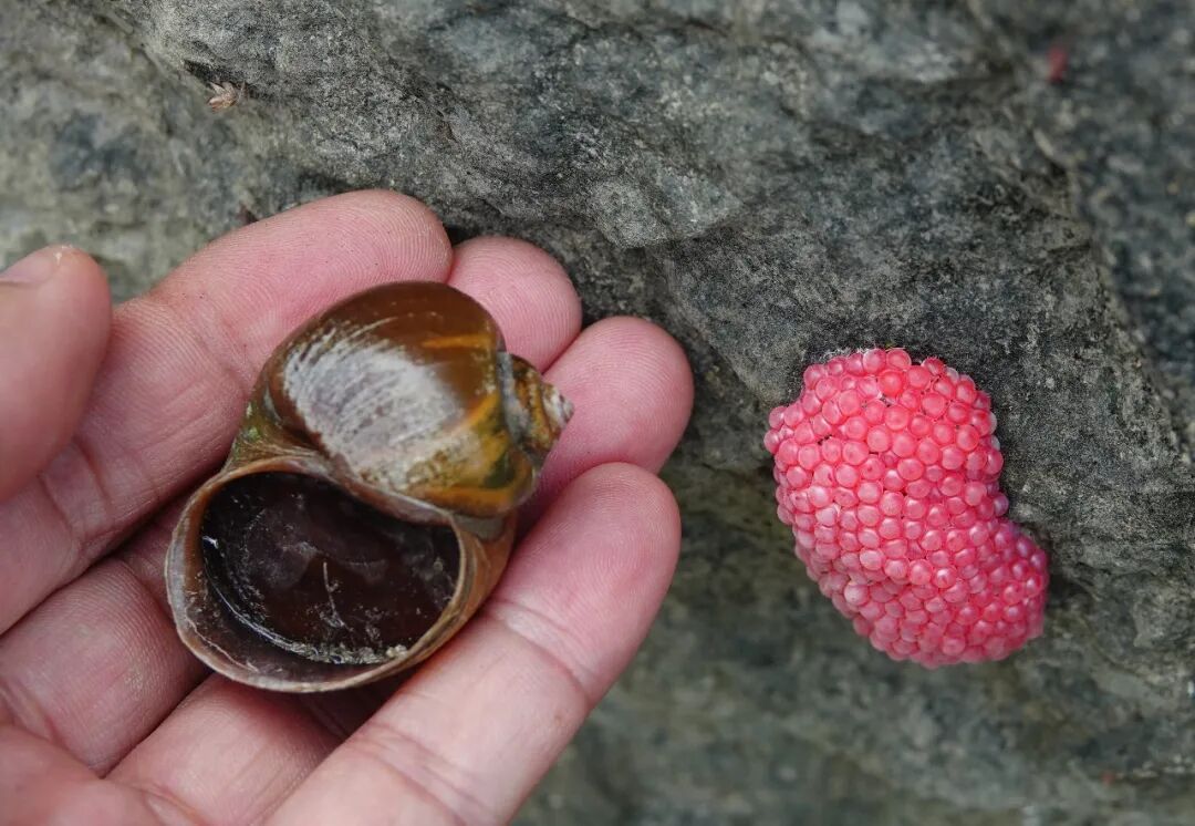 发现大量粉红色卵块