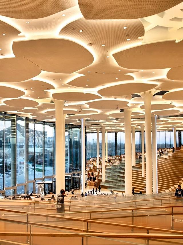 · 推荐理由:这里不是传统意义的图书馆,室内用144棵“银杏树”和“书山”营造出“临山间、于树下”的阅读意境,空间感极强,光是坐着就觉得很治愈。适合想静下心来看书或单纯想找个漂亮地方待着的朋友。